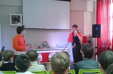 Ученики 10б класса провели экскурсию "Добрая волшебница Химия" 4В классу.