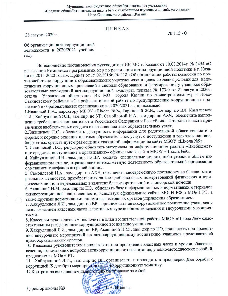 Об организации антикоррупционной деятельности в МБОУ "Школа №9"
