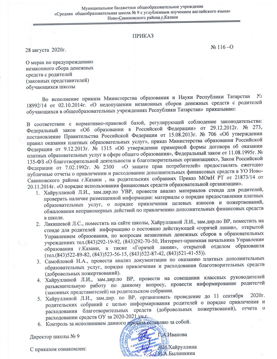 О мерах по предупреждению незаконного сбора денежных средств с родителей