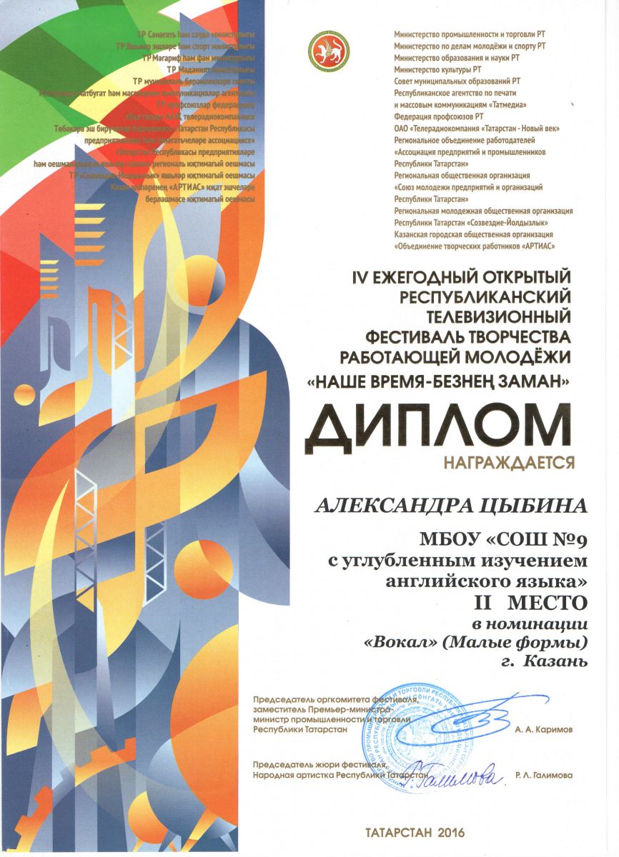 Опубликовано: 24.10.2016Поздравляем Цыбину Александру Борисовну с победой IV республиканском открытом телевизионном фестивале!