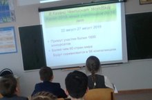 Урок "WorldSkills Kazan 2019" 26.01.2019В рамках подготовки к проведению Мирового чемпионата по профессиональному мастерству по стандартам "WorldSkills" в Казани классный руководитель 8 класса Низамова Л.Г. провела урок "WorldSkills Kazan 2019". Особое внимание на уроке уделялся популяризации различных профессий, вовлечению подростков в волонтёрскую деятельность.