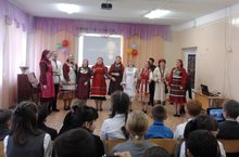 10 октября наша гимназия принимала гостей - фольклорный ансамбль Академии Искусств. Данная встреча была организована руководителем школьного музея Дружбы Народов Шакировой Альфией Маликовной в ознаменование изучения финно-угорской культуры. Стихотворения поэтов финно-угорской народности звучали в исполнении учащихся 7 классов. На празднике выступал доцент кафедры татарской музыки и этномузыкологии КГК им. Н.Жиганова Г.М.Макаров.