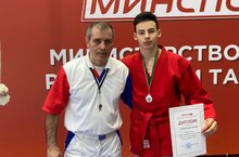 Ученик 7 класса нашей гимназии Шаймуллин Аскар занял 2 место на Первенстве Республики Татарстан по самбо среди юношей и девушек 2009-2011 г.р. в весовой категории до 54 кг. Поздравляем Аскара с победой и желаем ему дальнейших побед!