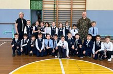 Хәрби-патриотик айлык кысалаларында үткәрелгән чараларга нәтиҗәләр ясап, җиңүче сыйныфларга күчмә кубоклар тапшырылды.