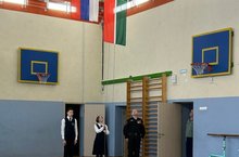 По традиции, учебную неделю начинаем с поднятия флагов РФ и РТ, исполнения государственных гимнов. На этой недели честь поднятия флагов РФ и РТ была предоставлена ученикам 7 класса Шаймуллину Аскару и Валиевой Азалии.