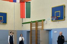 По традиции, учебную неделю начинаем с поднятия флагов РФ и РТ, исполнения государственных гимнов. На этой недели честь поднятия флагов РФ и РТ была предоставлена ученикам 10 класса Чернакову Сергею и Кашаповой Дине.