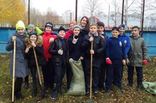 Дружно разобрав рабочий инвентарь: мётлы и грабли, провели работу по очистке территории: убрали опавшую листву, подмели около здания гимназии, привели в порядок дорожки на прилегающей территории.