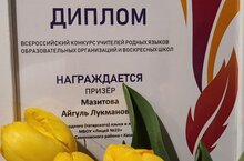 Мазитова Айгуль Лукмановна, учитель родного(татарского) языка и литературы стала призёром данного конкурса. Поздравляем!28-29 мартта "Туган телләр һәм якшәмбе мәктәпләре укытучылары өчен Бөтенроссия конкурсы"ның йомгаклау этабы булып узды.