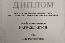 Җәмгыять белеме буенча республика олимпиадасының йомгаклау этабы призеры Юн Яна белән горурланабыз. Алга таба да уку һәм олимпиада эшчәнлегендә уңышлар телибез!