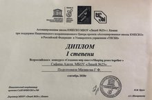 Поздравляем Сафину Аделю, ученицу 8В класса, с победой во Всероссийском конкурсе "Создавая мир вместе"