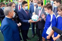 Президент пообщался со спортсменами и тренером Хабриевой Гелюзой Ришатовной, подарил новые футбольные и баскетбольные мячи.
