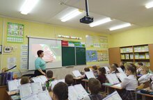 У нас учат: | педагогических работников-62, из них учителей-55 |