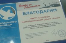 Учащиеся нашей школы успешно справились со Всероссийским молодежным историческим квестом "Битва за Севастополь" за что получили благодарность от руководителя Татарстанского движения "Волонтеры победы".