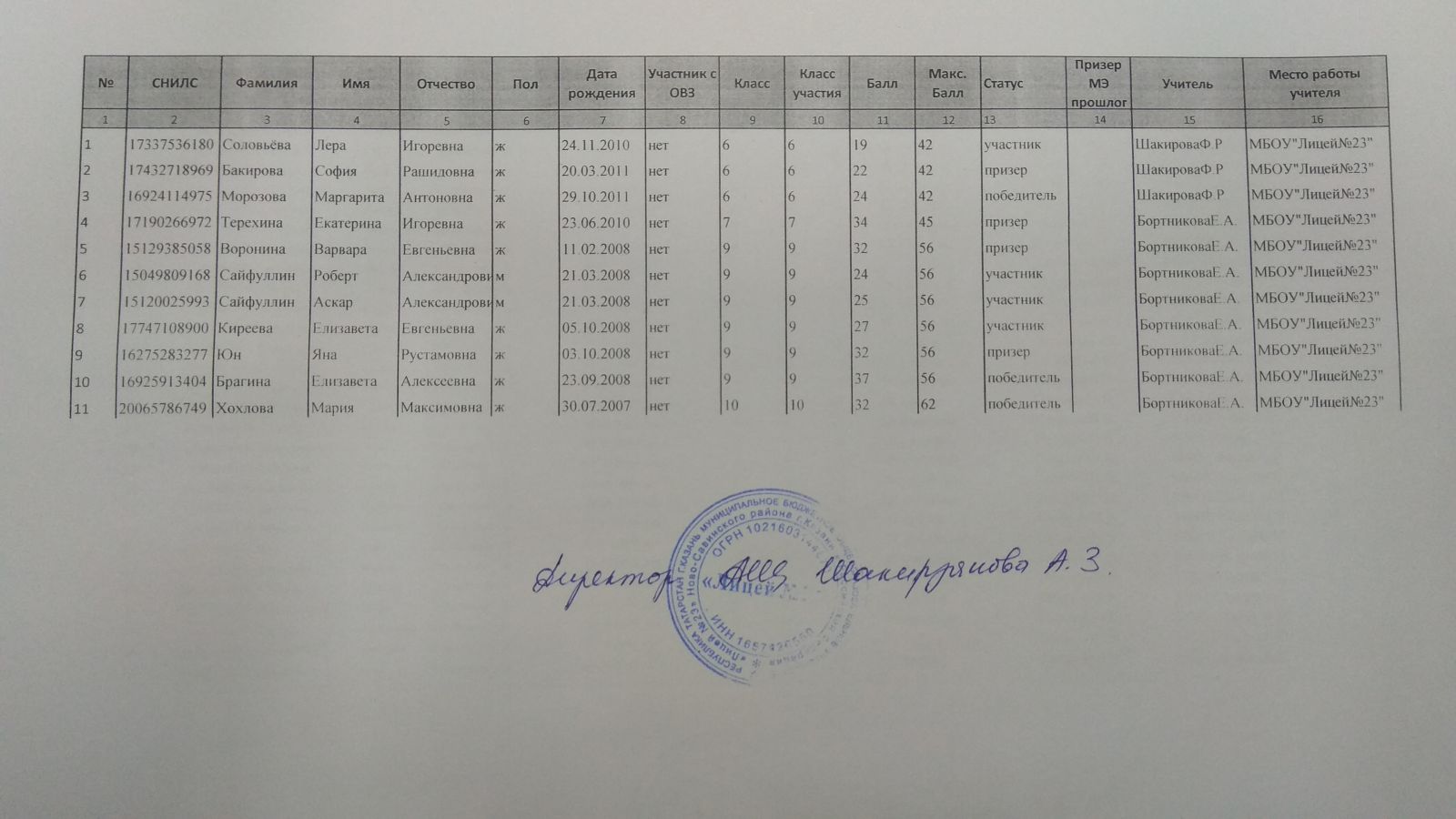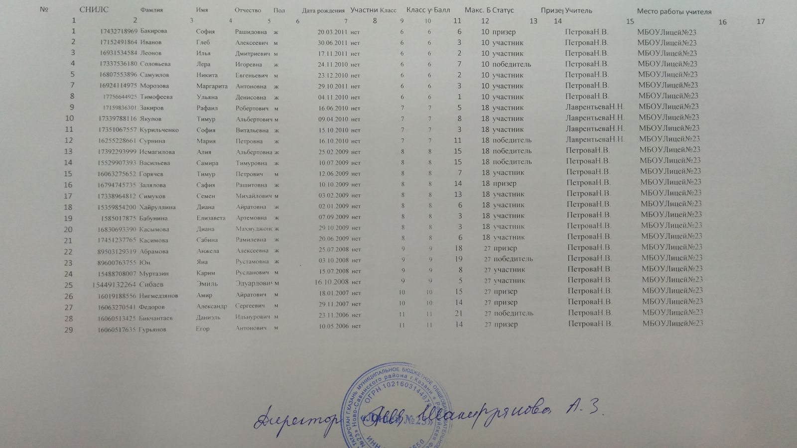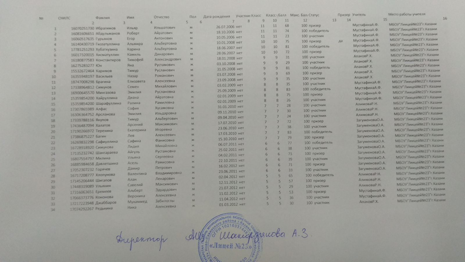 Протокол олимпиады по Русскому языку для обучающихся с нерусским языком