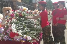Сегодня учащиеся нашей школы возложили цветы к мемориалу памяти организованный около гимназии №175. Ребята почтили память жертв трагедии минутой молчания.