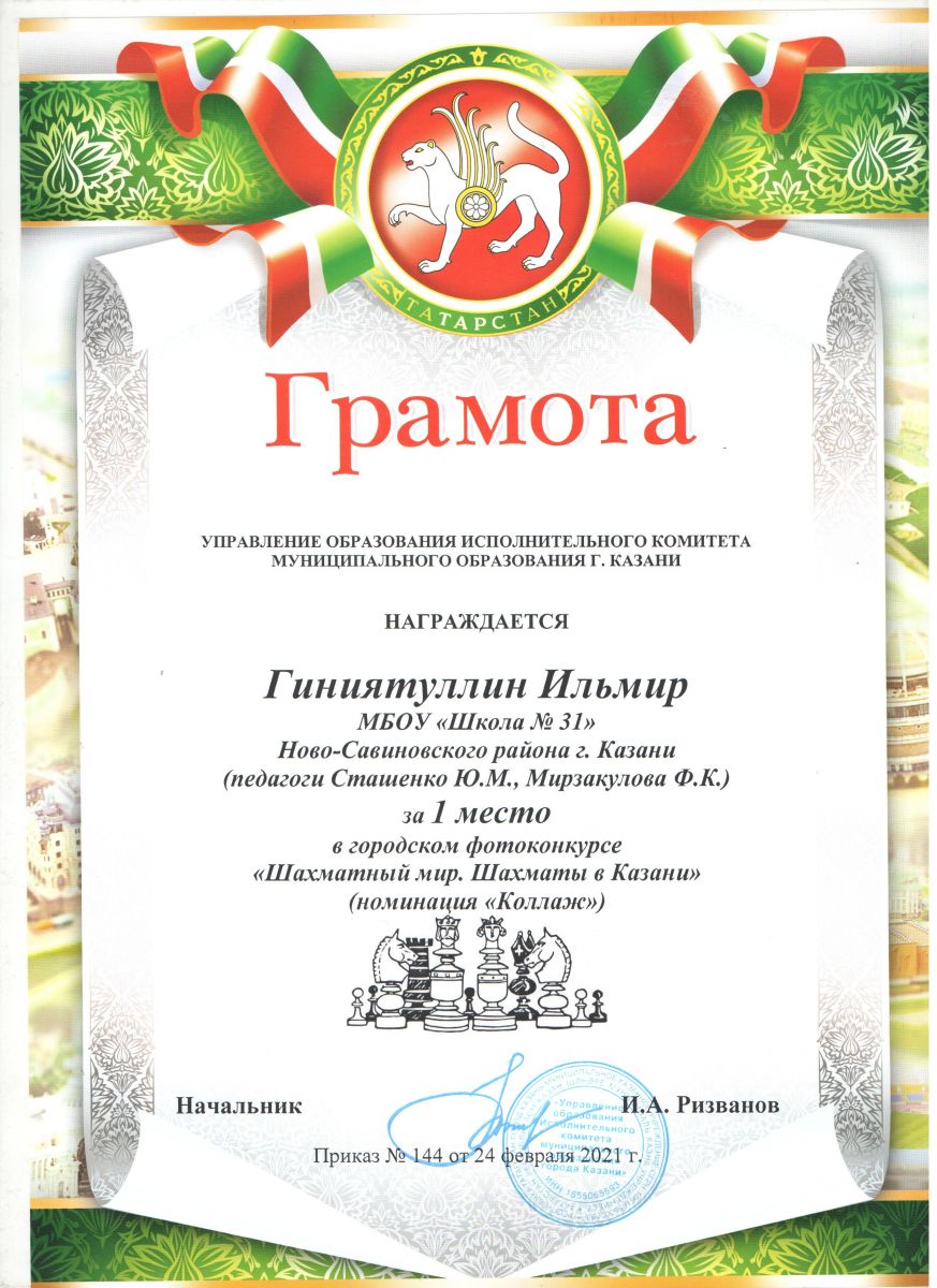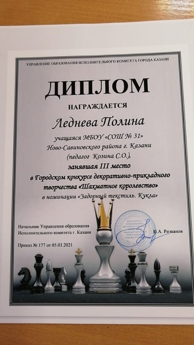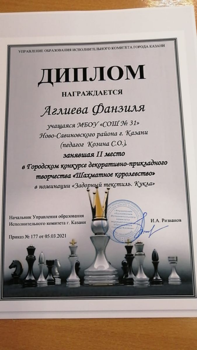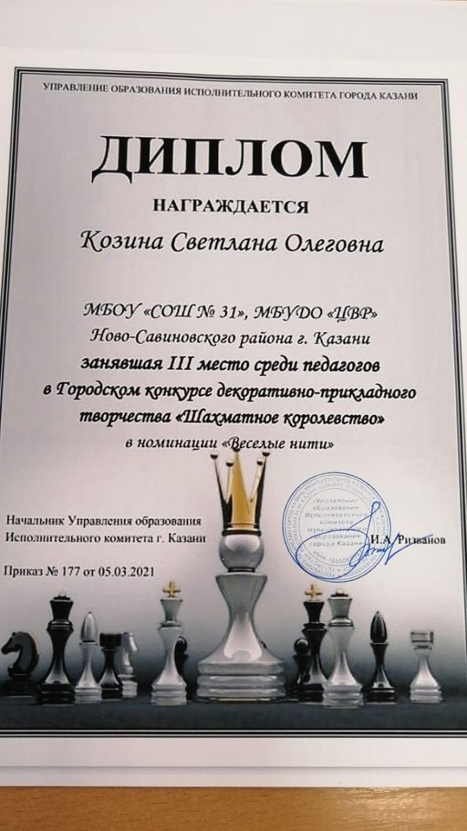 Поздравляем победителей городского фотоконкурса "Шахматный мир. Шахматы в Казани" и городского конкурса декоративно-прикладного творчества "Шахматное королевство". 29.04.2021