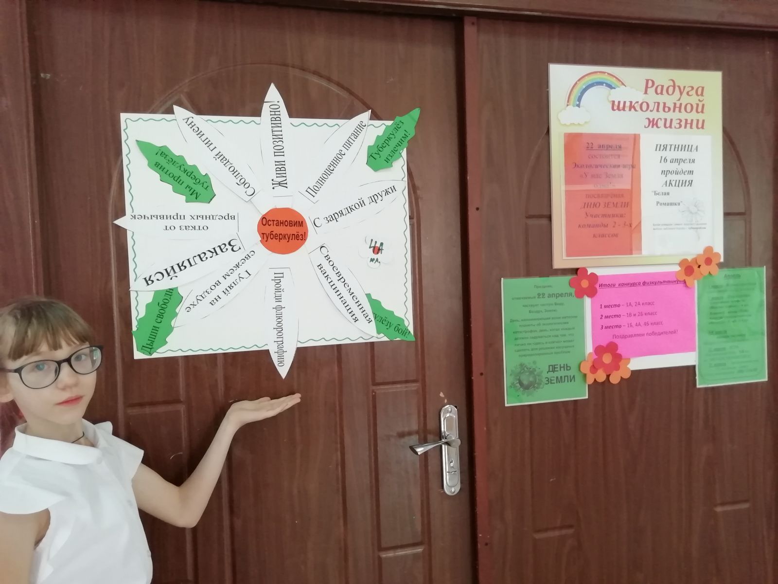 24 марта – Всемирный день Борьбы с туберкулёзом. В связи с этим в течении месяца в нашей школе проводились мероприятия направленные на пропаганду здорового образа жизни среди детей и сотрудников с целью информирования о данном заболевании и его профилактике.
