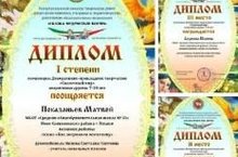 Поздравляем! Ребята нашей школы стали призерами Республиканского конкурса творческих работ "Сказка мудростью богата". Поздравляем: 1. Диплом I степени Матвей Показаньев (3А класс). Руководитель кружка "Юные мастера" - Козина С.О. 2. II место - Ачаликова Дина (1 А класс). Руководитель кружка "Мастерская чудес" - Мирзакулова Ф.К. 3. III место - Леднёва Полина (3А класс). Руководитель кружка "Юные мастера" - Козина С.О. Желаем дальнейших побед!