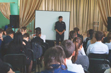 Сегодня в школе провели совместный классный час среди 8 - 11 классов. Классный час посетил инспектор ПДН.