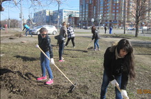 Учащиеся 8-А класса ударно потрудились на зеленой зоне по ул.Амирхана. 19.04.2014