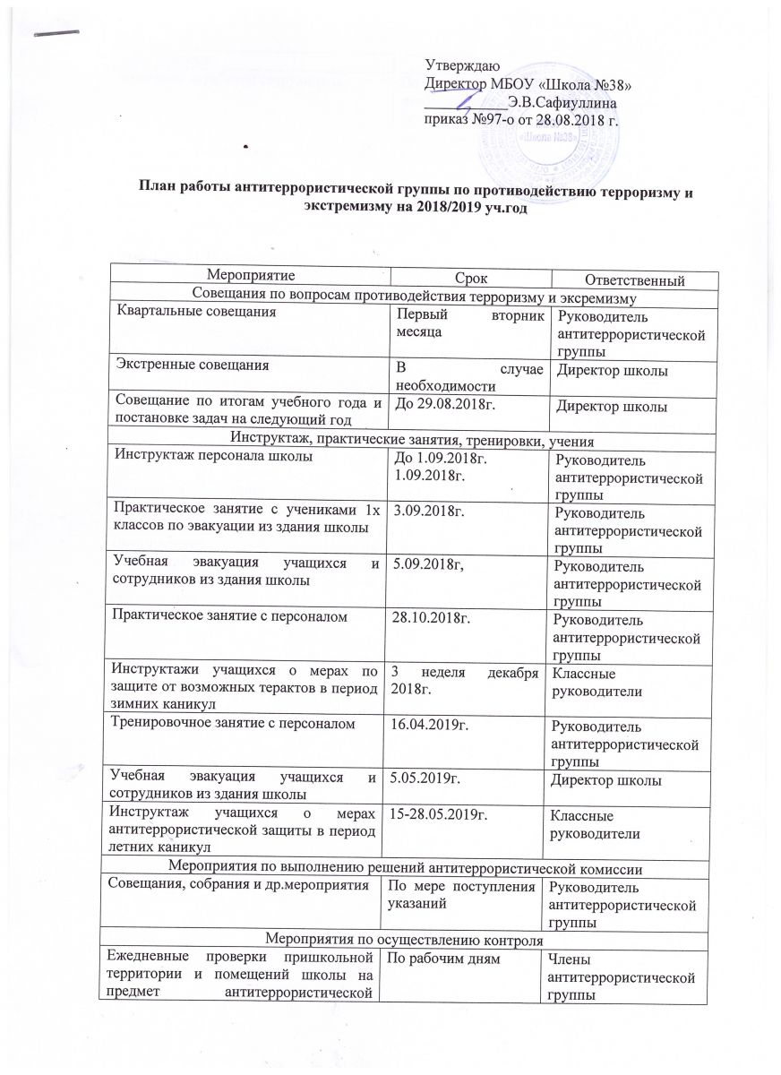 План работы антитеррористической группы по противодействию терроризму и экстремизму стр 1 стр2