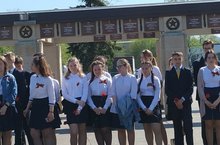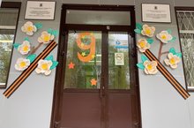 Школа готовится к празднованию Дня Победы. Учащиеся 5А и 10А классов украсили фасад школы и создали праздничное настроение.