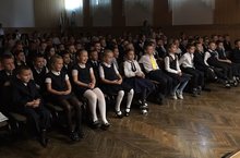 Сегодня прошло посвящение в первоклассники. Детям подарила закладки, тетрадки и расписание уроков. Учащиеся школы подготовили для первоклассников спектакль "Пингвины".
