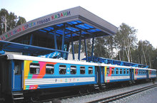 На детской железной дороге в г. Казани две станции: «Молодежная» и «Изумрудная». Полная развернутая длина путей ДЖД – 4,428 км.Маршрут малой железной дороги начинается в поселке «Залесный», от станции «Молодежная», пролегает по живописной лесопарковой зоне «Лебяжье» и имеет 2 остановочные платформы – «Березовая роща» (расположена в лесном массиве) и «Спортивная» (расположена недалеко от стадиона «Локомотив»), а заканчивается возле озера «Изумрудное» на станции с одноименным названием.