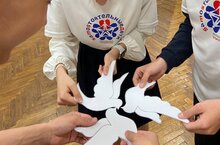 Организаторы акции отряд «Свои», подготовили бумажных голубей, а также возложили цветы к вечному огню.