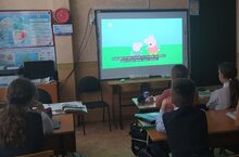 Неделя английского языка продолжается. Сегодня учащиеся 5 классов смотрели мультфильм на английском языке "Peppa Pig"