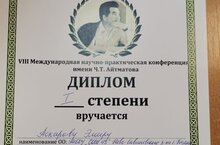 2022 нче елның 10 нчы декабрендә безнең мәктәпнең 7А сыйныфы укучысы Аскаров Эмир Ч.Айтматов исемендәге VIIIхалыкара фәнни - тикшеренү конференциясендә катнашты һәм беренче урынга лаек булды. Эмирны һәм аның җитәкчечсен Елхина Л.В. беренче урын яулап алулары белән котлыйбыз! Афәрин! Киләчәктә дә уңышлар телибез!