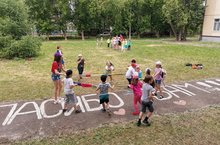 Сегодня в лагере прошёл конкурс рисунков на асфальте "Моя Россия.Моя страна", приуроченный Дню России. После конкурса дети посмотрели музыкальную сказку в КДК им.В.И.Ленина.