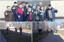 Все классы нашей школы убирают территорию рядом со школой. Папы и дедушки 5А класса подают отличный пример своим сыновьям и внукам, учавствуя в уборке вместе с детьми.