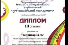 Учащиеся 6б класса стали победителями 3 степени в Республиканском конкурсе вокального и инструментального исполнительства "Алишевский камертон" посвященном 100-летию ТАССР. Художественный руководитель Л. Р. Тухватуллина и Н. А. Хиврич. Поздравляем!