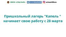 Пришкольный лагерь "Капель " начинает свою работу с 28 марта 27.03.2022