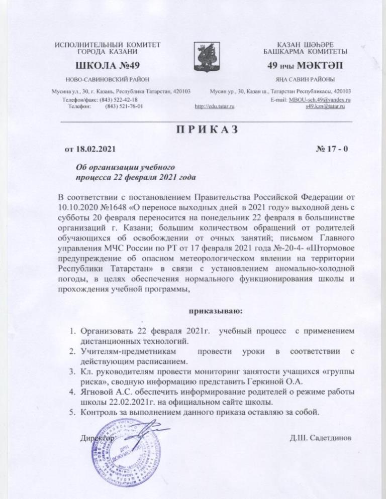 Организация учебного процесса 22 февраля 2021 г.