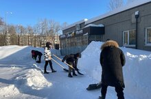 Сегодня наши 9классники сдают устное собеседование, а 8-м классам до него еще год. Поэтому мы решили помочь своей школе и дружно вышли почистить снег. Погода хоть и морозная, но располагающая для совместного труда.