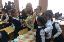 Уроки добра прошли во всех классах. Учащиеся начальной школы работали над проектом "Дорога в ДОБРО". Гость первоклассников - корреспондент 1 Канала Светлана Костина.