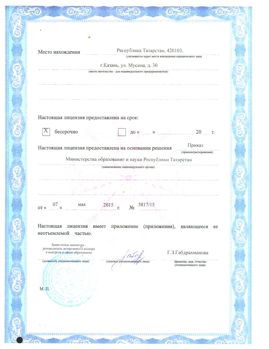 Лицензия на осуществление образовательной деятельности (лист 1) (лист 2) (приложение)
