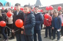 7 мая учащиеся нашей школы 7 а и 7 бк ласса в количестве 50 человек приняли участие в акции "День Победы". Учащиеся спели песню и опустили красные шарики в небо.