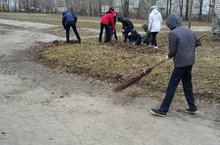 Сегодня учащиеся нашей школы дружно вышли на субботник.