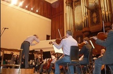 Дирижер рассказал о том, как вести себя во время концерта, когда можно аплодировать, а когда это считается дурным тоном. Затем маэстро предложил любому желающему попробовать себя в роли дирижера.