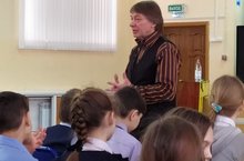 2 марта учащиеся начального звена с радостью встретились на уроках литературного чтения с полюбившим актером Рустемом Гайнуллиным. Он находит рычаги воздействияна воспитательный характер маленького слушателя. Через произведения А.Гайдара помогает слушателям раскрыть Великую Военную тайну помощи маленьких "человеков" взрослым в борьбе за счастье родной земли.