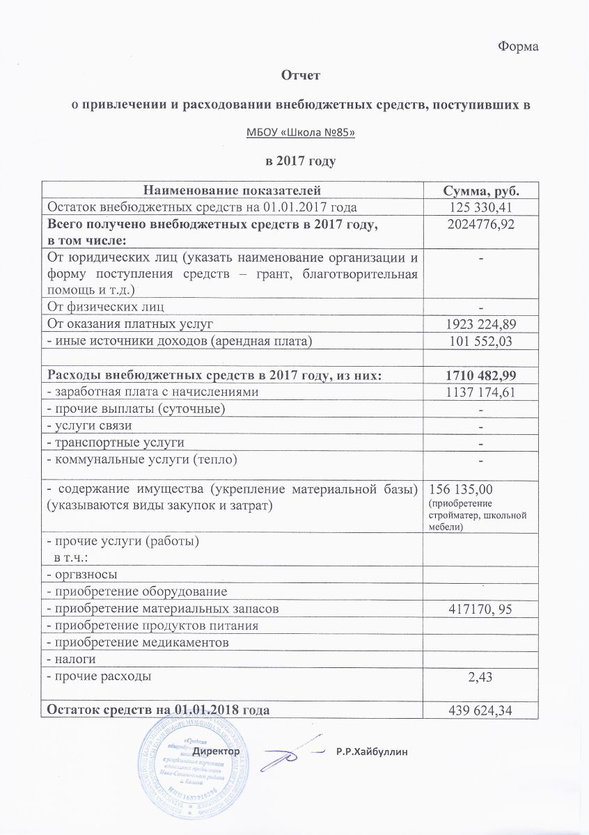 Отчеты о привлечении и расходовании внебюджетных средств в 2017 г.