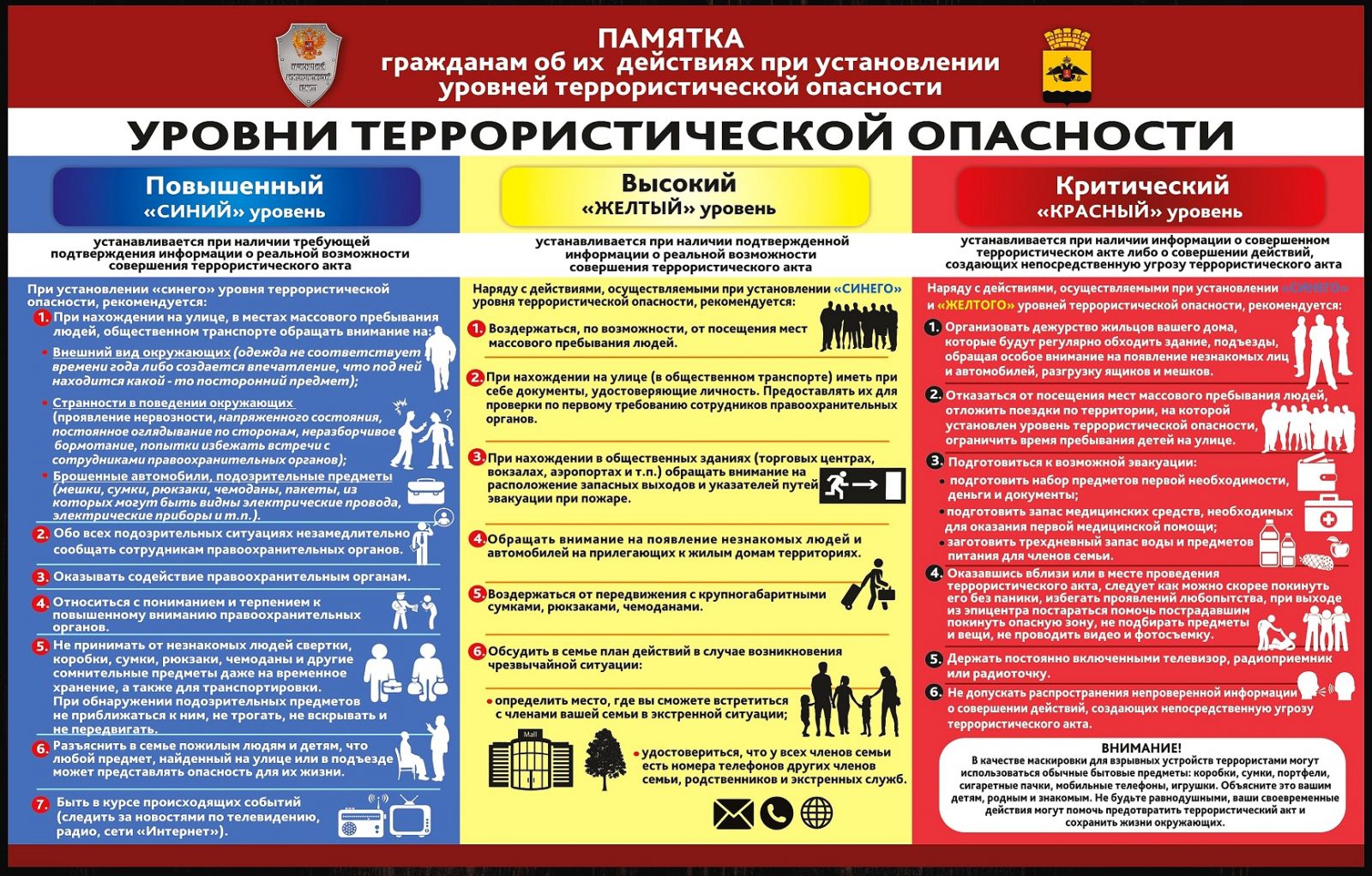 Памятка гражданам об их действиях при установлении уровней террористической опасности