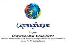 30 октября 2020 года прошла Республиканская научно-практическая конференция «Общественно-значимые инициативы в рамках реализации Хартии Земли», участие в которой от нашей школы принимала учитель биологии Смирнова Алина Александровна, она выступила с докладом «Реализация принципов Хартии Земли на уроках экологии в 10 классе» (из педагогической практики).