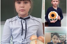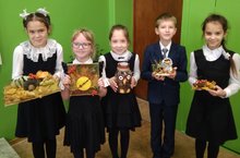 Ученики 4а класса Ахметов А, Кордюкова М и Шабан Ю приняли участие в конкурсе поделок " Дары осени"