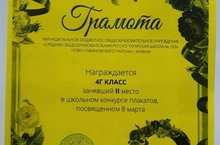 4г класс занял II место в школьном конкурсе плакатов, посвящённом Международному женскому Дню!Поздравляем!