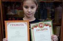 Награждена грамотой за 1 место в школьном конкурсе «Грамотей» ( на лучшую тетрадь по русскому языку) в рамках Недели начальных классов