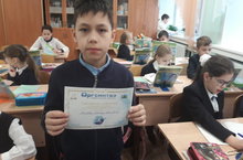 Ученик 1а класса Валеев Данис занял 2 место во Всероссийской олимпиаде по окружающему миру.Молодец!